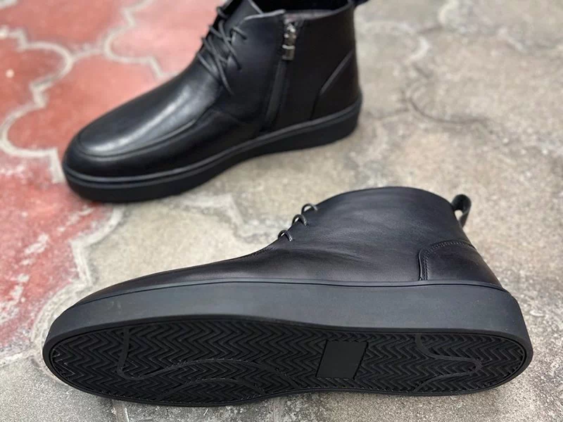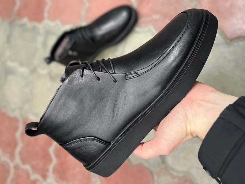 Матеріал верху – лицьова натуральна шкіра хромового дубління. Всередині утеплювач – набивне хутро. Міцна, товста та морозостійка гумова підошва (TR) з відмінними амортизаційними характеристиками. Каблук – відсутній. Фіксація на нозі – вощеною шнурівкою. Блискавка з внутрішнього боку додає зручності. Чудово підійдуть для піших прогулянок, кермування автомобіля тощо. Країна виробник – Україна.