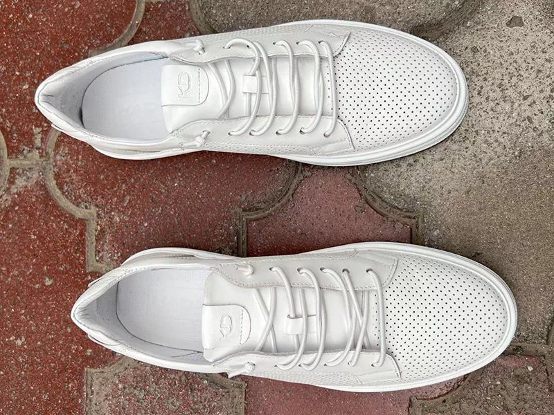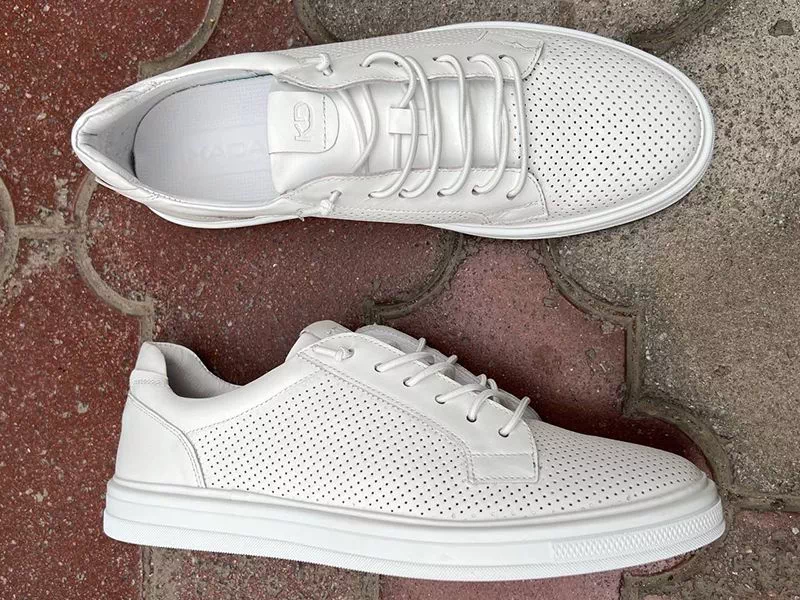 Трендові літні кеди від Kadar™ у білому виконанні. Добре пасують з джинсами, штанами, шортами, бриджами, повсякженним, кежуал стилем одягу тощо. Шикарно виглядають на нозі, мають сучасний дизайн, зручну колодку. Дуже елегантна, легка та гнучка модель. Підійдуть чоловікам зі стандартними розмірами стопи та підйому.