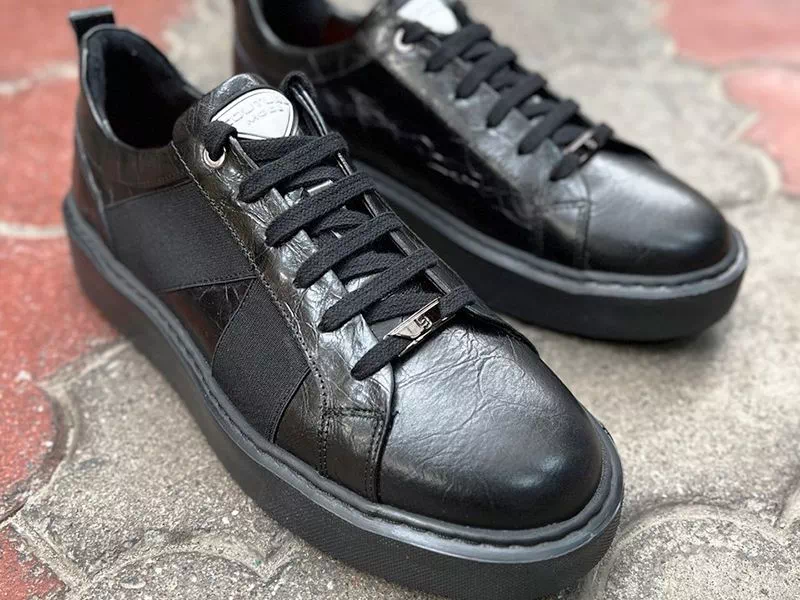 Вишукані молодіжні кеди від Luciano Bellini™ чорного кольору. Добре пасують з джинсами, штанами, шортами, бриджами, повсякженним, кежуал стилем одягу тощо. Шикарно виглядають на нозі, мають сучасний дизайн, зручну колодку. Дуже елегантна, легка та гнучка модель. Підійдуть чоловікам зі стандартними розмірами стопи та підйому.