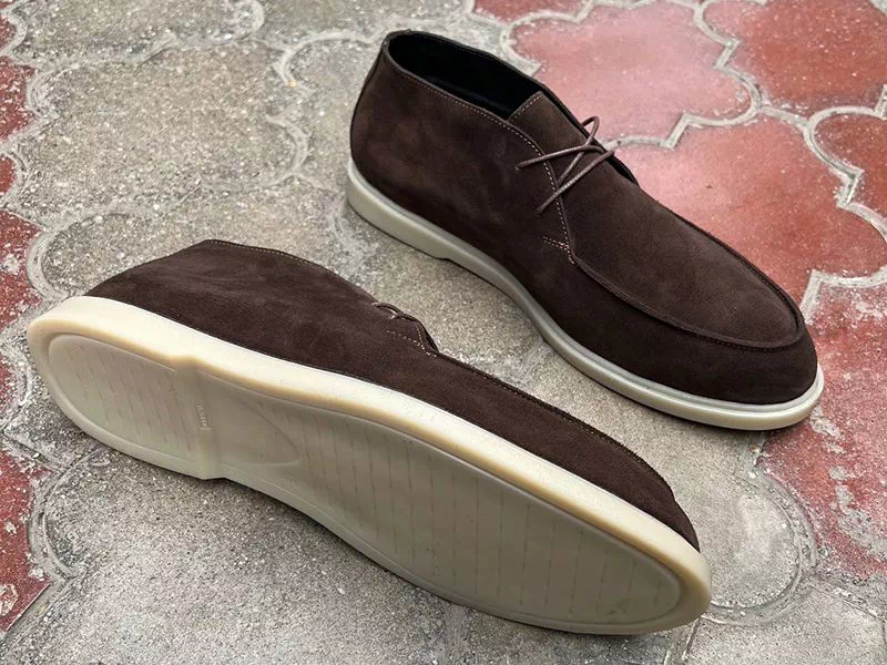 Пошиті з натуральної замші. Всередині утеплені байкою. Легка та міцна підошва ТПУ має прекрасні амортизаційні властивості. Фіксація на нозі – шнурівка. Каблук – невеличкої висоти. Чудово підійдуть для довготривалих піших прогулянок, кермування авто тощо. Країна виробник – Україна.