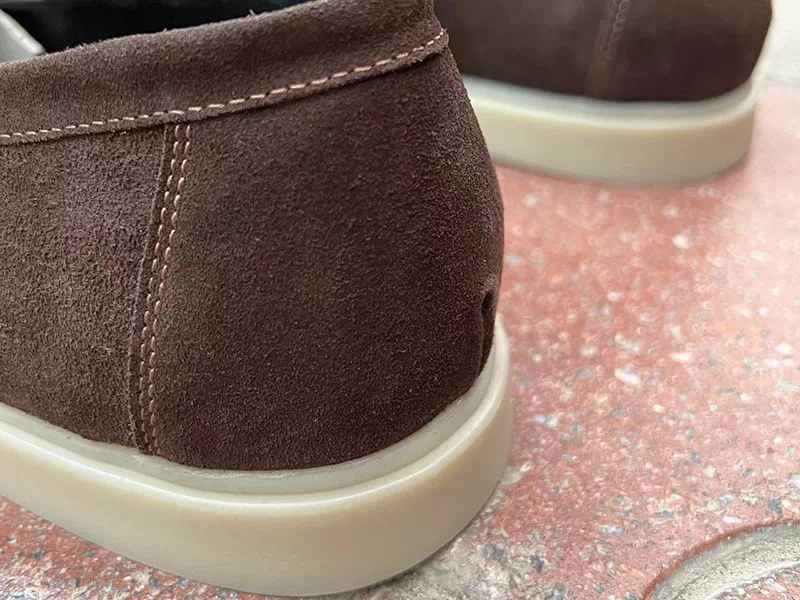 Пошиті з натуральної замші. Всередині – шкіряні підклад та устілка. Легка та стійка до затирання поліуретанова підошва з прекрасними амортизаційними характеристиками. Фіксація на нозі – відсутня. Каблук – невеличкої висоти. Чудово підійдуть для довготривалих піших прогулянок, кермування автомобіля тощо. Країна виробник – Україна.