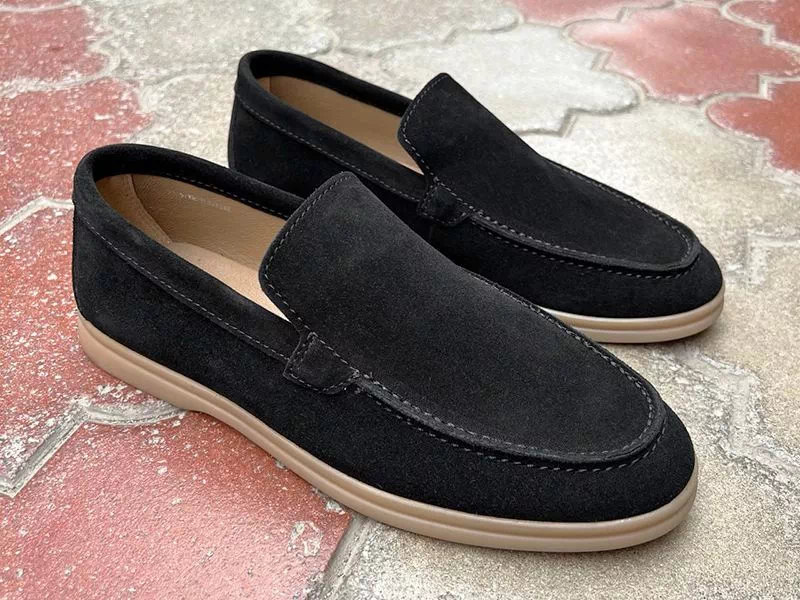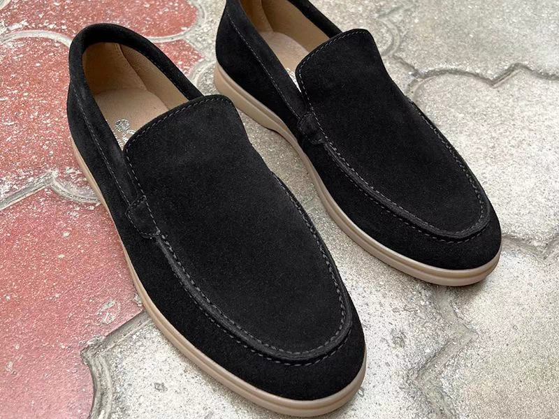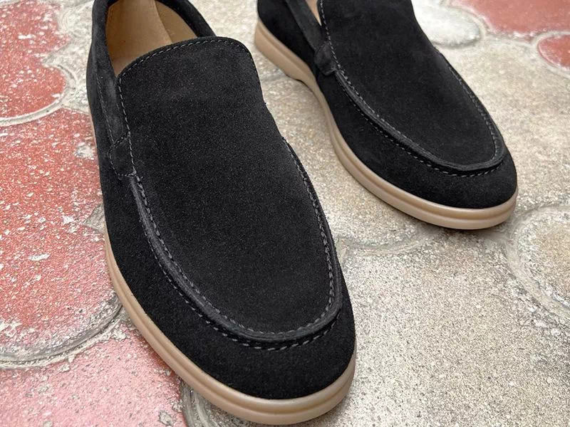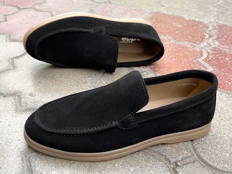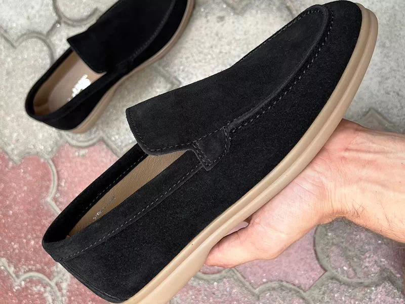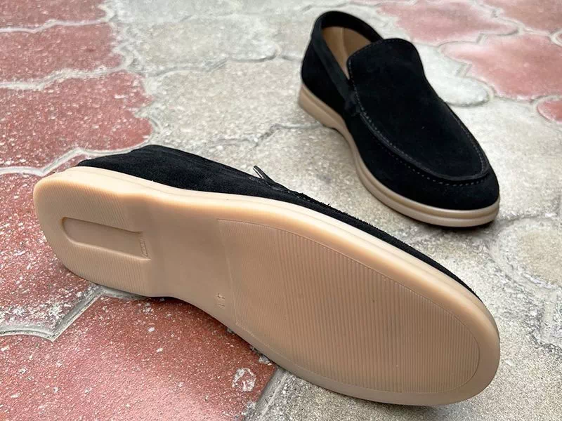 Матеріал верху – натуральна замша. Всередині – шкіряні підклад та устілка. Міцна та стійка до затриання підошва TR не ковзає, має відмінні амортизаційні властивості. Фіксація на нозі – відсутня. Каблук – невеличкої висоти. Прекрасно підійдуть для кермування автомобіля тощо. Країна виробник – Україна.