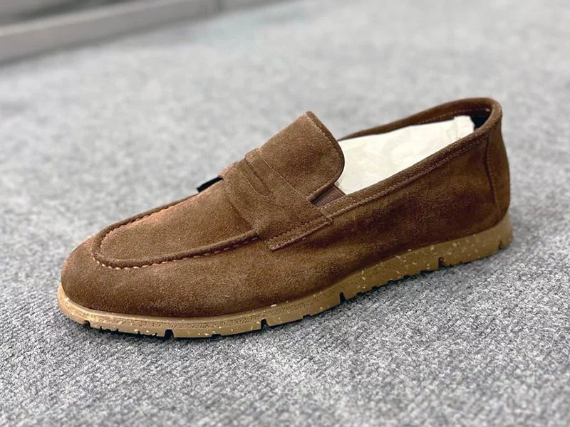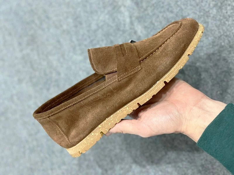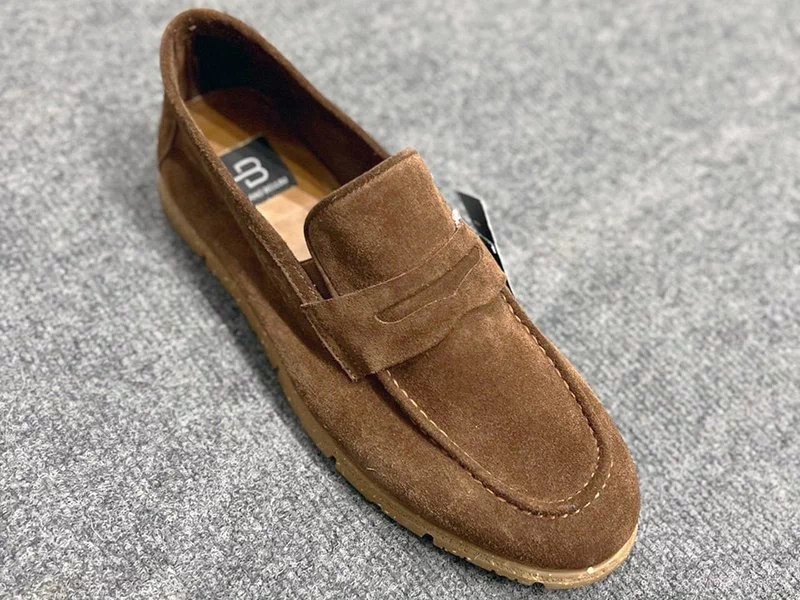 Матеріал верху – натуральна замша. Всередині – безпідклад та шкіряна устілка. Міцна та стійка до затриання підошва ТЕП з відмінними амортизаційними характеристиками. Фіксація на нозі – невеличкими бічними гумовими вставками. Каблук – відсутній. Прекрасно підійдуть для кермування автомобіля тощо. Країна виробник – Туреччина.